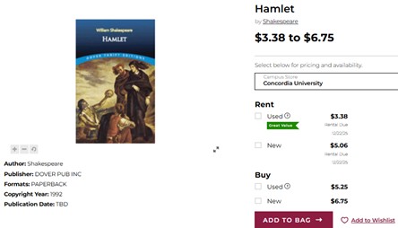 Vous pourrez commander et acheter le matériel pédagogique dont vous aurez besoin pour le semestre d'hiver 2026 à partir du 5 janvier 2026, en ligne ou en personne à la librairie Concordia (Book Stop, métro Guy-Concordia).