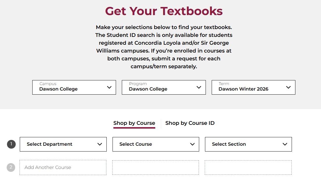 • Rendez-vous sur la plateforme en ligne de la librairie Concordia (Book Stop) pour commander vos supports de cours.
