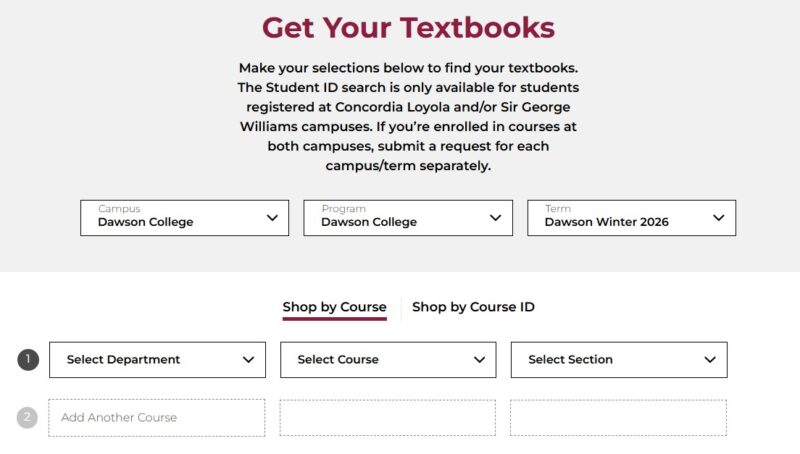 • Sélectionnez votre campus (Collège Dawson) et votre trimestre.