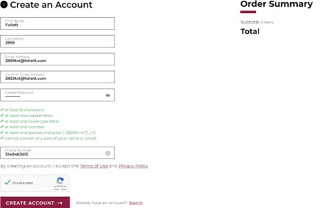 • Sélectionnez Créer un compte et entrez vos informations. Sélectionnez ensuite « Créer un compte » en bas de la page.