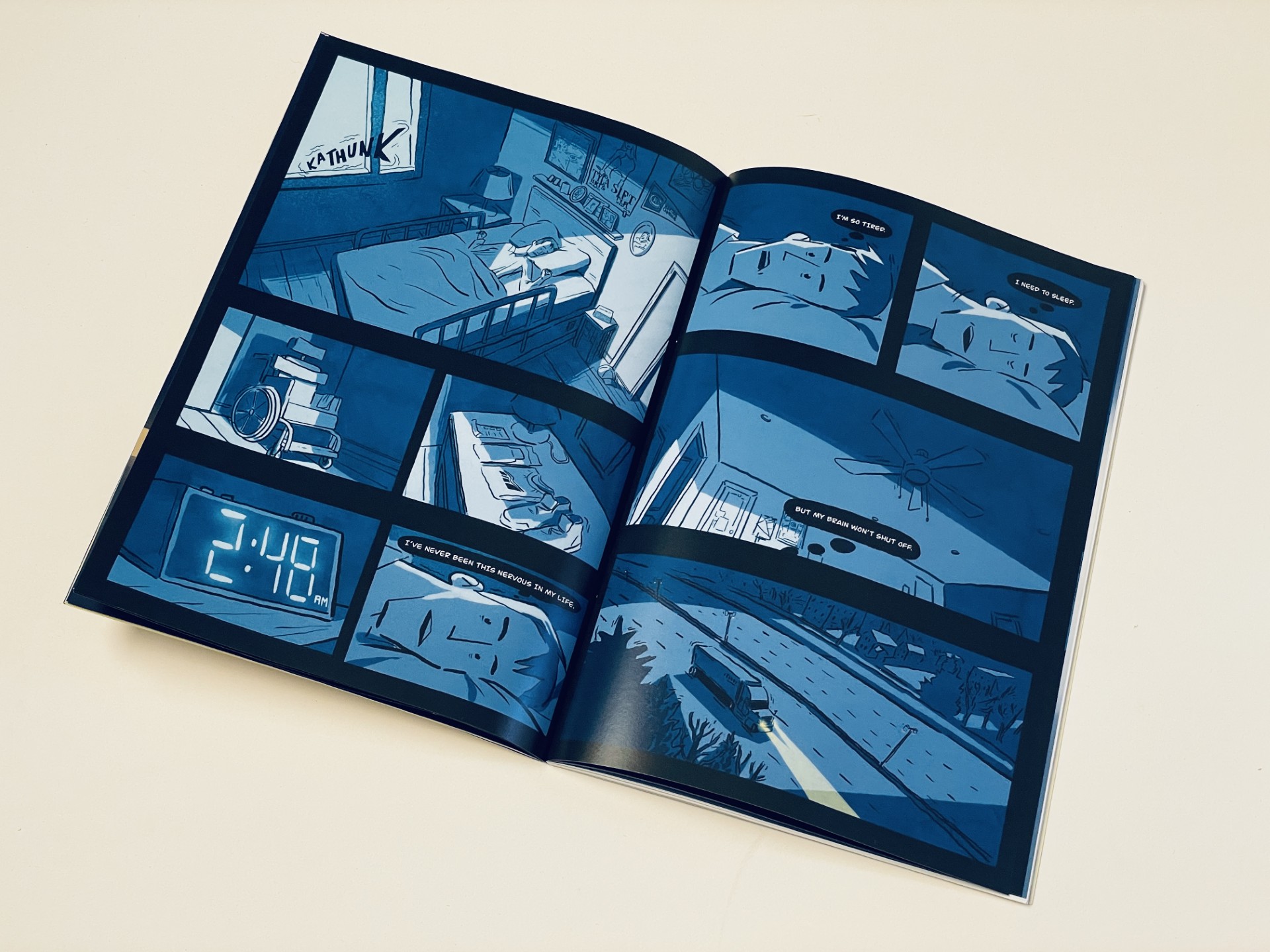 Le roman graphique illustre le défi extraordinaire qu'ils ont dû relever: Dan poussant Brad (Sciences humaines, promotion de 2020) dans un fauteuil adapté pendant 40 km, avant que Brad n'utilise son déambulateur adapté pour parcourir les 2,2 km restants en solo. Comme l'a dit Andrew Katz, enseignant d'anglais, qui collabore au projet: «Les choses ne se sont pas déroulées comme prévu. La journée a été mouvementée, ce qui a rendu l'histoire encore plus intéressante.»