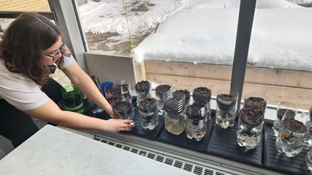 Le 27 février, les élèves du cours « Peace 365 », enseigné par Ivan Freud, ont planté leurs tomates dans le cadre du module « Paix et nature » du cours. Cette plantation a pu avoir lieu grâce à l’aide précieuse de Jenn de Vera, du Bureau du développement durable de Dawson, et de Tasneem, l’une des élèves bénévoles de son équipe Sustainabili-team.