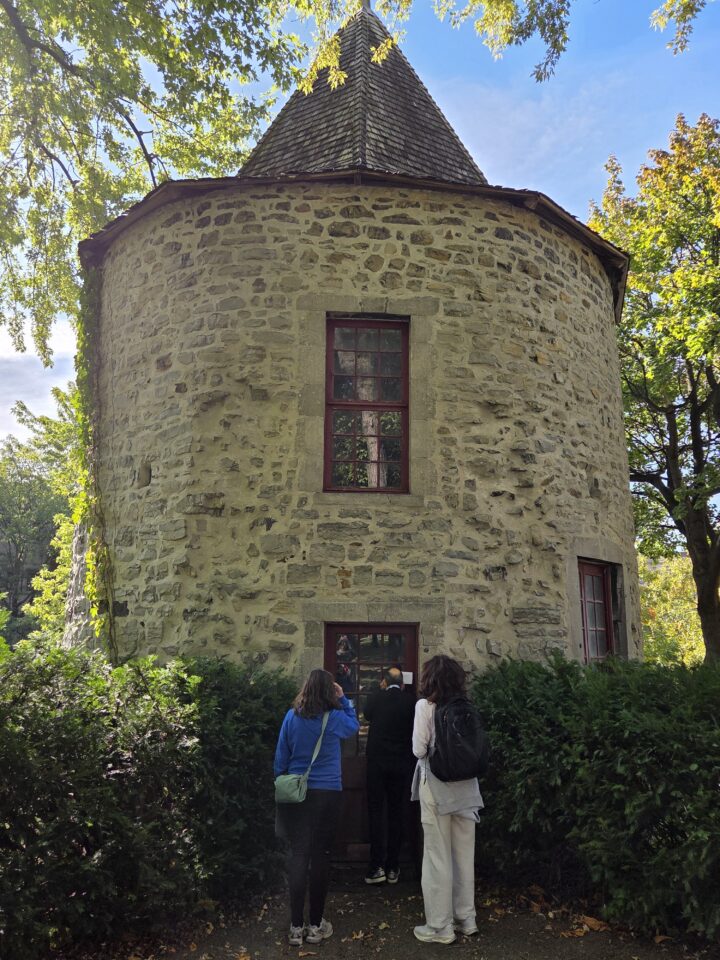 Ben a parlé des religieuses, sous la direction de Marguerite Bourgeoys (fondatrice de la Congrégation de Notre-Dame de Montréal), qui vivaient dans le bâtiment de l'actuel Collège Dawson. Il a fait remarquer l'emblème N et M sur les grilles, datant de cette époque. Les deux tours situées devant l'Académie College/Grand Séminaire de l'Archidiocèse de Montréal représentent un vestige encore plus troublant de cette époque. Nous avons appris que l'une des tours (l'autre était habitée par Marguerite Bourgeoys ) était l'endroit où l'on amenait les jeunes Autochtones pour qu'ils soient évangélisés par les Sulpiciens. Il s'agissait donc probablement du premier pensionnat autochtone.