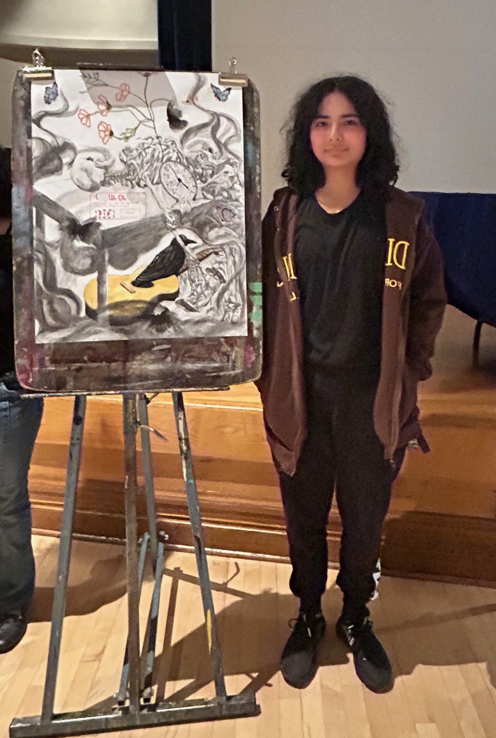 Photo: Valeria Ponce, lauréate du volet Arts visuels de cette année, avec son œuvre Fix [world.exe]? Félicitations à toutes les personnes étudiantes talentueuses, et un grand merci au comité des Arts visuels pour son enthousiasme et son dévouement. La Humanities and Public Life Conference de 2025 a été un véritable succès!