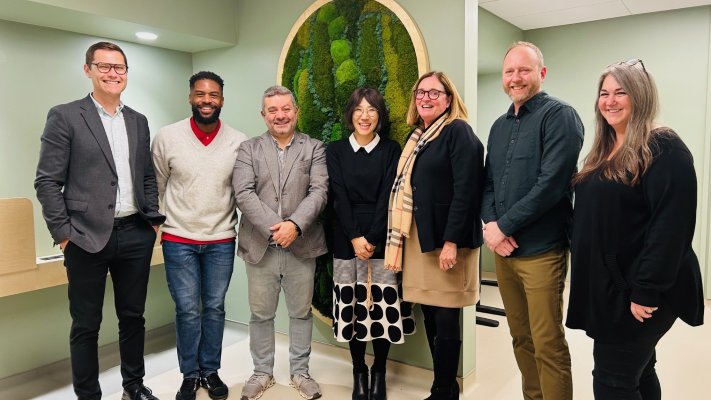 Photo (de gauche à droite): Maxwell Jones, Samuel Vallery Saint-Hilaire, Elias Azar, Inhwa Choi, Diane Gauvin, Geoff Kloos et Christine Lister, membres du personnel de Dawson, ont participé à la rénovation du local 2H.02.