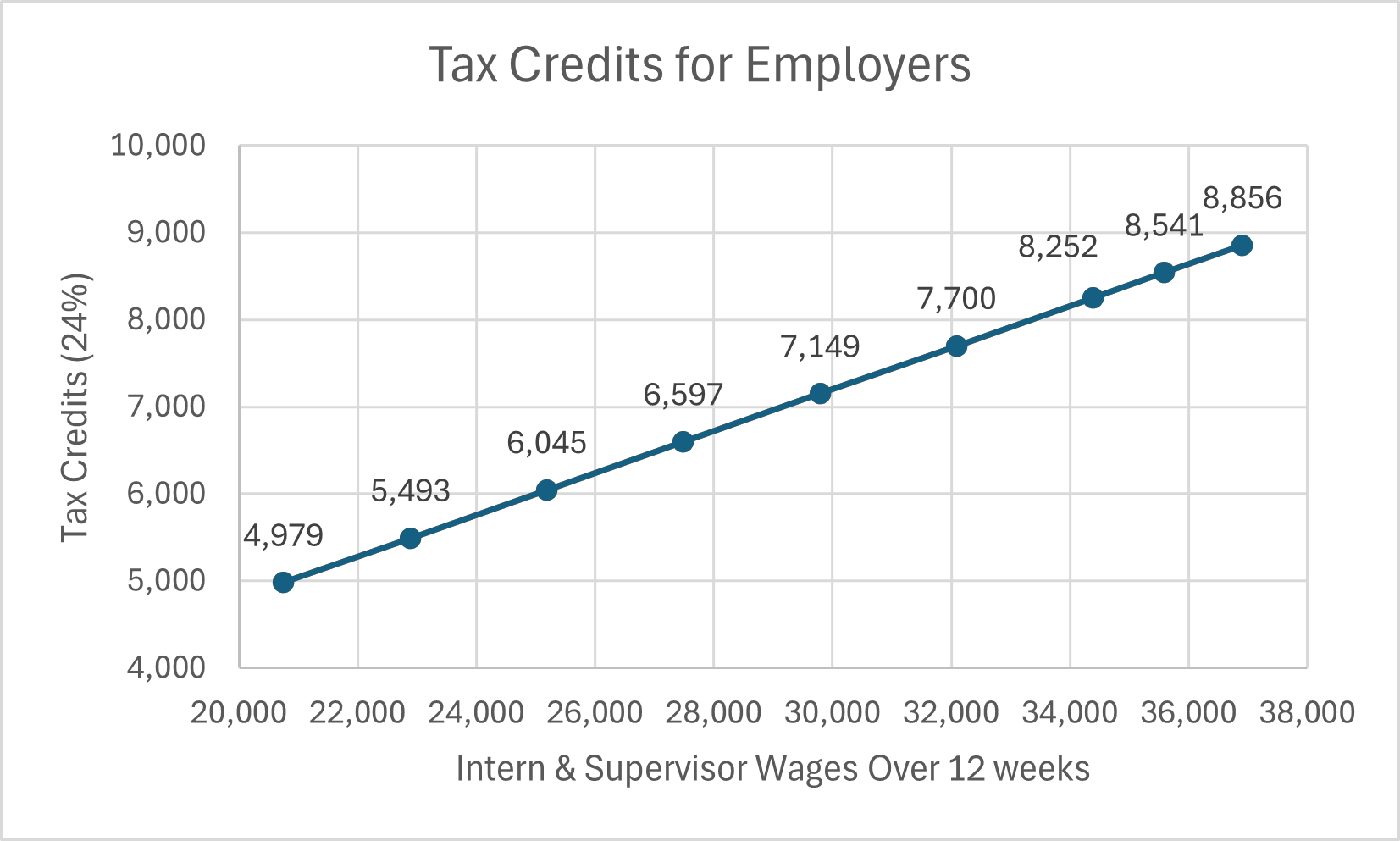 - « 50 % du salaire brut de chaque stagiaire admissible, jusqu'à concurrence de 5 000 $ par étudiant. »